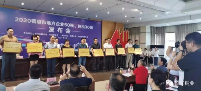 2021年7月6日下午,由市企業(yè)聯(lián)合會(huì)、市經(jīng)信局、市稅務(wù)局聯(lián)合舉辦的2020年度銅陵市“地方企業(yè)50強(qiáng)”“納稅30強(qiáng)”發(fā)布會(huì)在銅化集團(tuán)會(huì)議室隆重召開。副市長王綱根,市老領(lǐng)導(dǎo)、市“四會(huì)”創(chuàng)始會(huì)長唐世定,市委宣傳部副部長章祎,市中小企業(yè)局局長朱永平,市稅務(wù)局黨委委員、副局長李軍等領(lǐng)導(dǎo)出席會(huì)議。發(fā)布會(huì)上,我司被授予“2020年度銅陵市地方企業(yè)50強(qiáng)”的榮譽(yù)稱號(hào)!