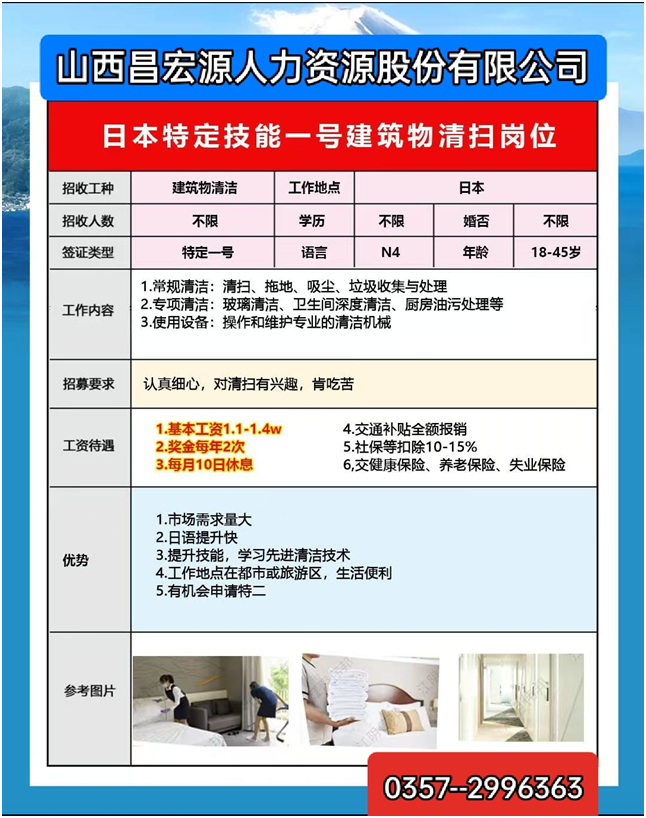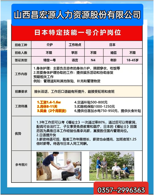 想通過赴日工作漲薪,卻卡在3個問題:① 怕日語不好找不到工作 ② 擔(dān)心公司不正規(guī)被騙 ③ 不知道自己適合哪種簽證……”以上問題不要擔(dān)心山西昌宏源人力資源股份有限公司順應(yīng)臨汾市市場需求,為赴日、德就業(yè)人員提供專屬服務(wù)啦!↓↓↓